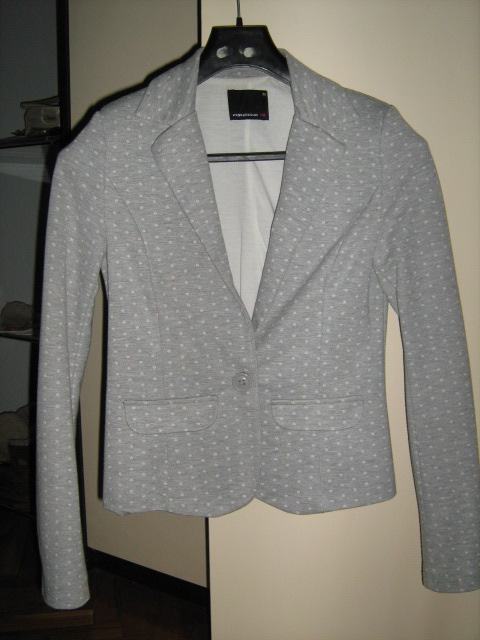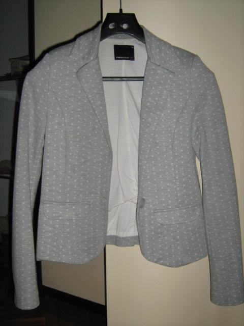Svijetlo sivi sako na bijele točkice, veličina M, postavljen, marka Fishbone, kupljen u New Yorkeru. Nosena par puta, očuvan. Jako udoban za nositi, mekan. Kopča se na jedno dugme. Platila sam ga 200kn.