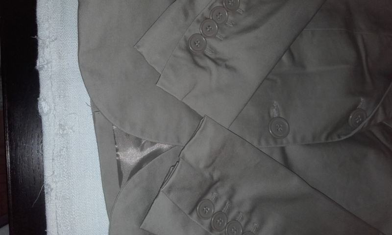 Prodajem sako bež boje, vel. 40, sastava: 98% pamuk i 2% spandex. Mjere: dužina 64cm, širina 36cm, dužina rukava 55,5cm.