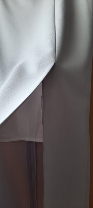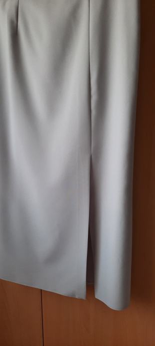 2. Suknja je podstavljena, pencil kroja duljine 86 cm. Razrez/falda na lijevoj nozi naprijed 43 cm. U struku je 44ccm, u bokovima cca 53 cm.