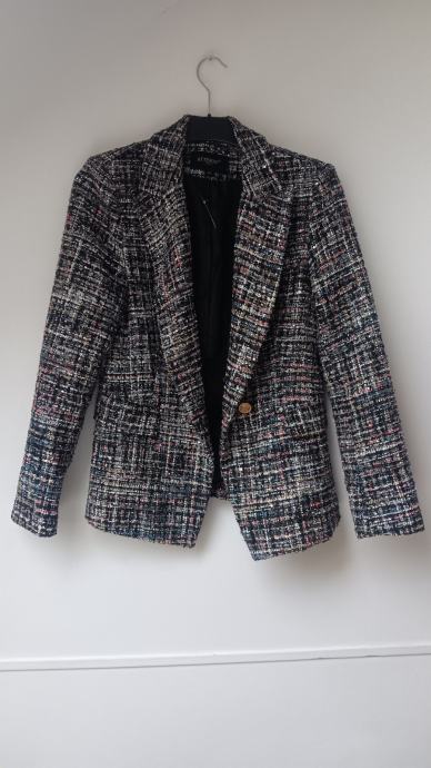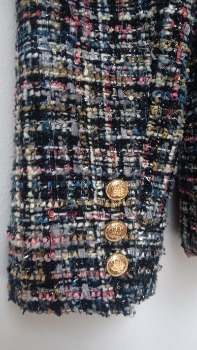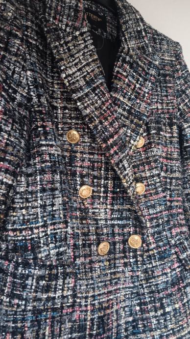 Svečani sako tvid 38 novo Attentif Paris vrhundkj Balmain kroj gumbi boje starog zlata, lagano srebrno svjetluca otmjen i elegantan zbog boja lakl ga je stilizirati sa puno boja