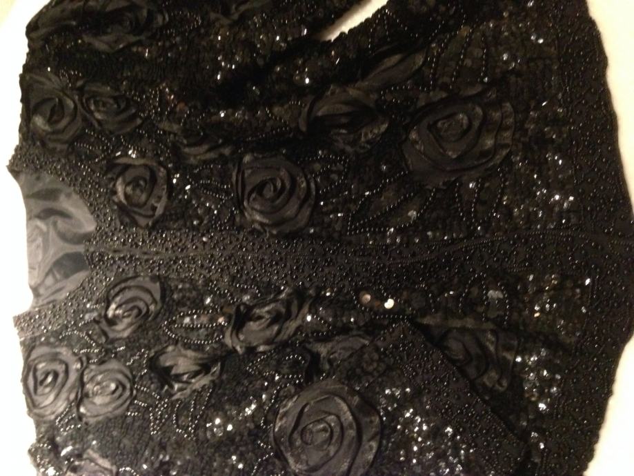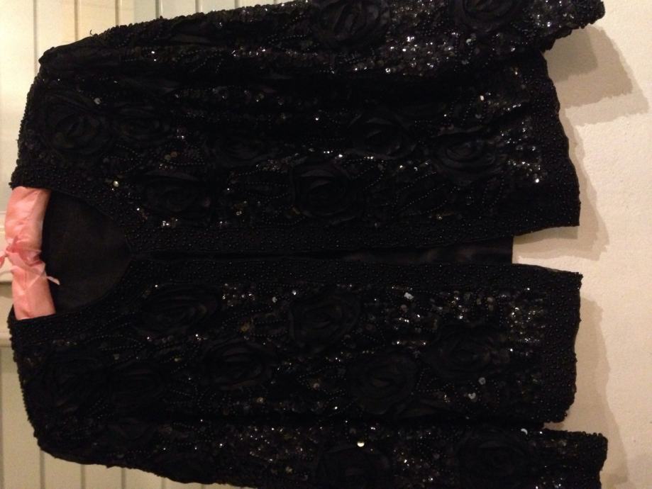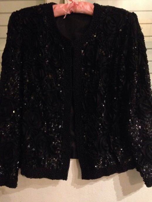 Unikat večernja jakna sako ručni rad saten trake šljokice crne perle