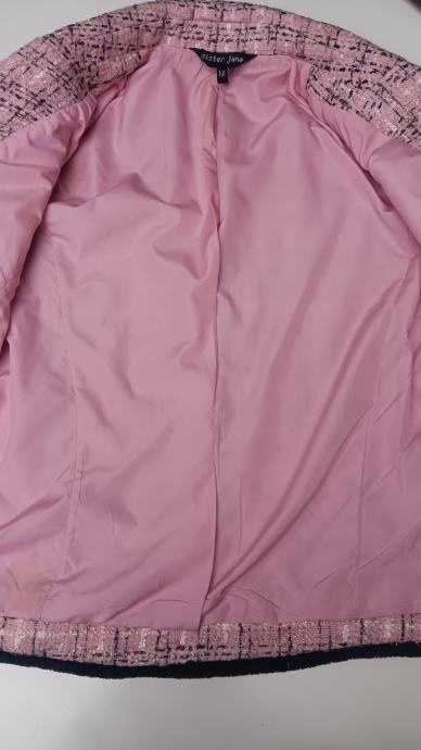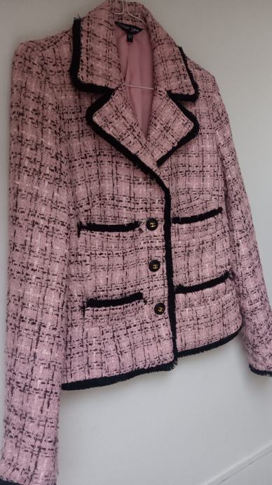 Tvid sako Sister Jane deklariran M ali odgovara samk S i XS, imam i njegove gumbe ali su na njemu originalni Chanel gumbi jako bogat tvid izgleda skupo i jako skupo plaćen u nabavi