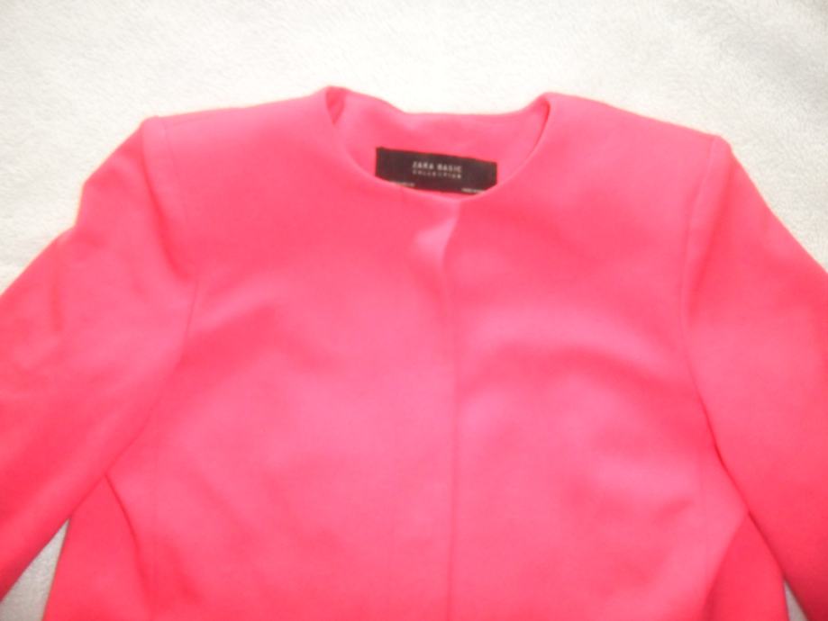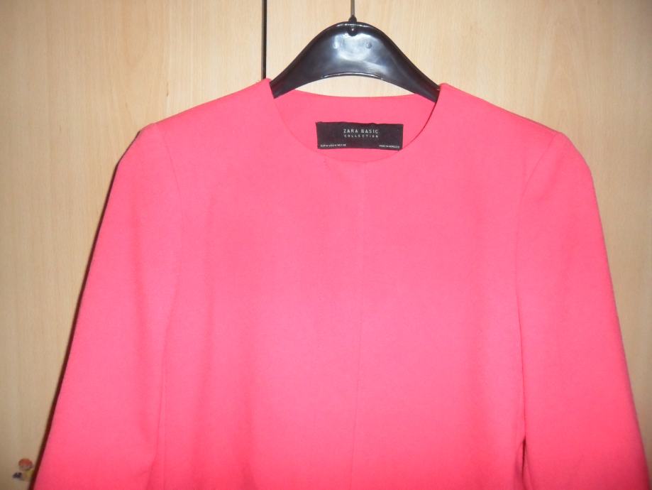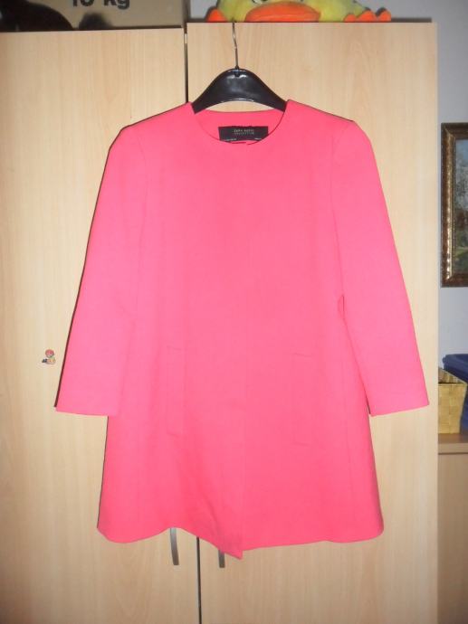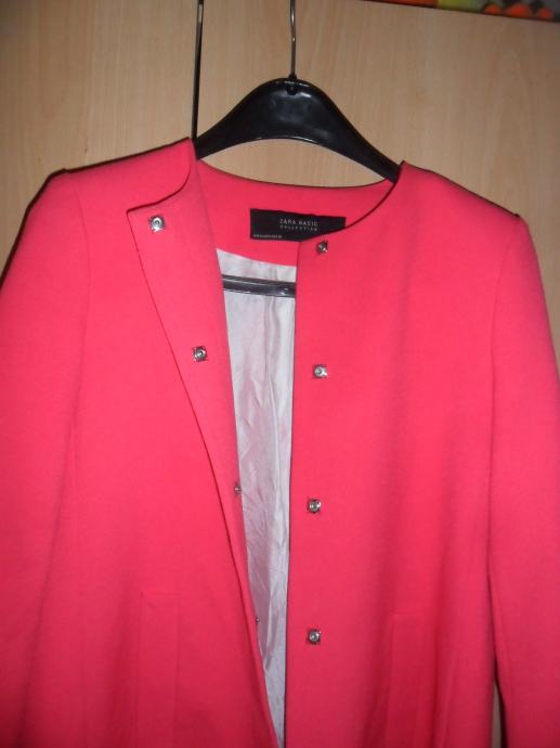 Zara basic sako s podstavom u ružičastoj boji (boja kao na zadnjoj slici), mjere: ramena 37, prsa 48, duljina rukava od ramena 46 cm (rukavi 3/4 duljine), na leđima falda, kopčanje na drukere, izvana skoro kao nov, iznutra stanje 8/10, zašivena podstava po šavovima u duljini 2-3 cm, pa kome ne smeta ono što se ne vidi...povoljno