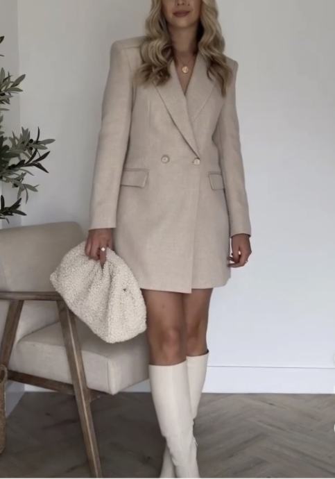 NOVI Zara sako/haljina, vel.L, sa etiketom, bez boje, duplo kopcanje.