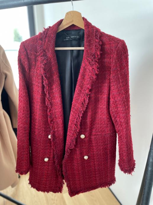 Bordo/Tamno crveni sako od Zare. Materijal kao Boucle.