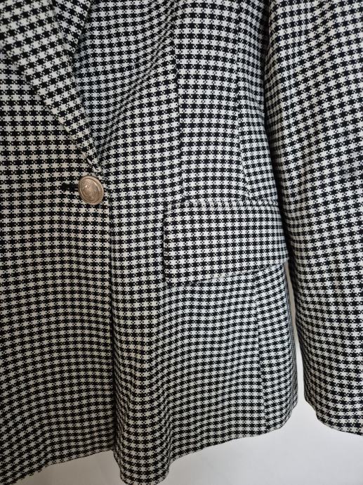 Prodajem Zara sako veličine 38 s elegantnim crno-bijelim kariranim uzorkom. Sako je rabljen, ali u dobrom stanju te je savršen za poslovne i svakodnevne kombinacije. Moderan kroj i kvalitetna izrada čine ga odličnim dodatkom svakoj garderobi.