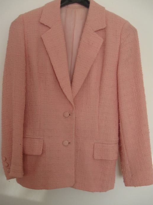 5. sako, bukle vuna, svj.roza, nošeno, vel,38, cijena 30 eura + materijal za suknju 20 eura