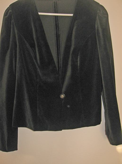 6.jaknica crni pliš, nikad obučena, 38 vel. 25 eura, kupljena u kompletu s dvodjelnom haljinom od muslina, ukupno 50 eura