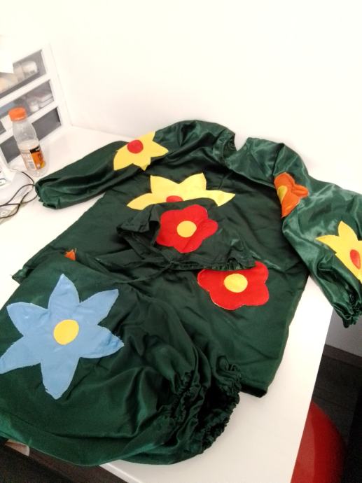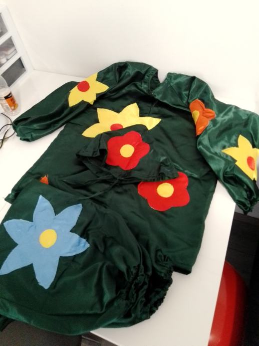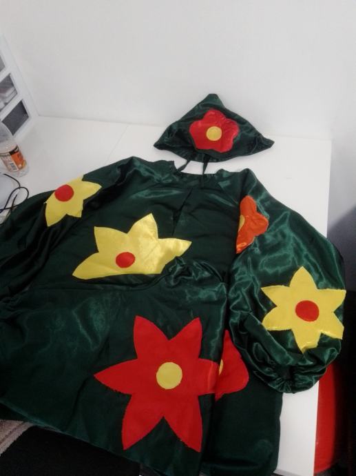 Očuvani ženski kostim za razne prigode prodajem.Materijal svila.Veličina univerzalna.Sastoji se od tri dijela majica,hlače i kapica.