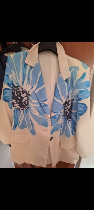 Nenošen ženski sako mješavina lan pamuk, dobiven za poklon, podstava je mješavina poliestera, univerzalna veličina m/l, džepovi su dekorativni.
