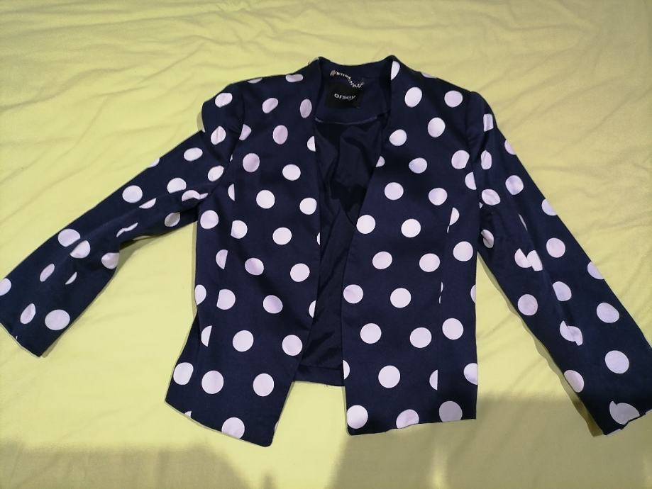 Novi Orsay sako, strukiran, modernog uzorka s točkicama.
