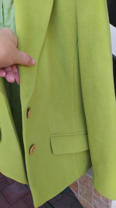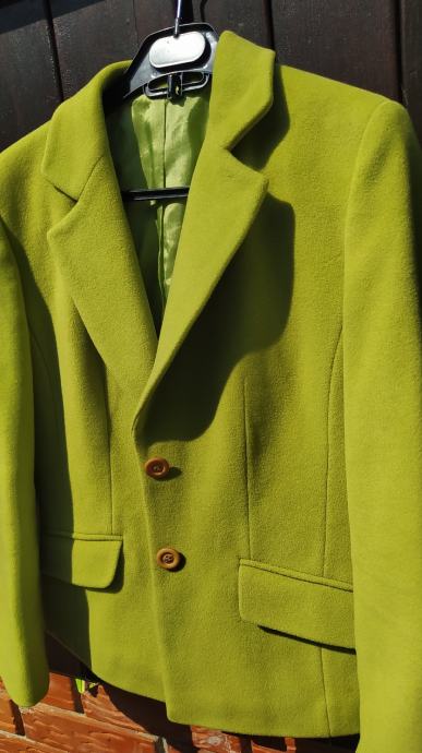 Diženzije: širina, ramena 40cm, širina ispod pazuha 44cm, širina, struka 42cm, doni rub 46cm, duljina sakoa 62cm,duljina rukava 56cm