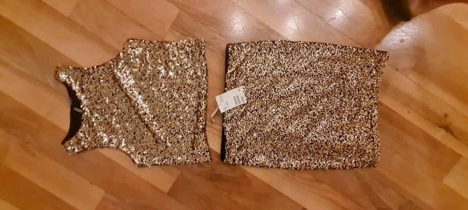 Predivan šljokičasti komplet iz H&M a,suknja još ima etiketu,kao što se i vidi.velicina S,a suknja Xs,ima elastina.