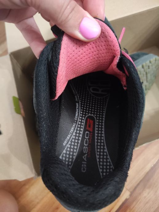S računom i original kutijom. Kupljene u Prosco, Zagreb za 84 eura. Nošene par puta, lagane i udobne, imaju zaštitnu kapicu naprijed, protuklizni đon, prozračni materijal.