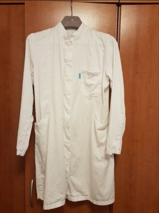 Prodajem rabljenu žensku laboratorijsku kutu. Veličina 38, 100% pamuk, kopčanje na gumbe (svi osim najgornjeg su pokriveni). Džepovi iznutra uredno pokrpani. Kupljena u Hospitaliji.
