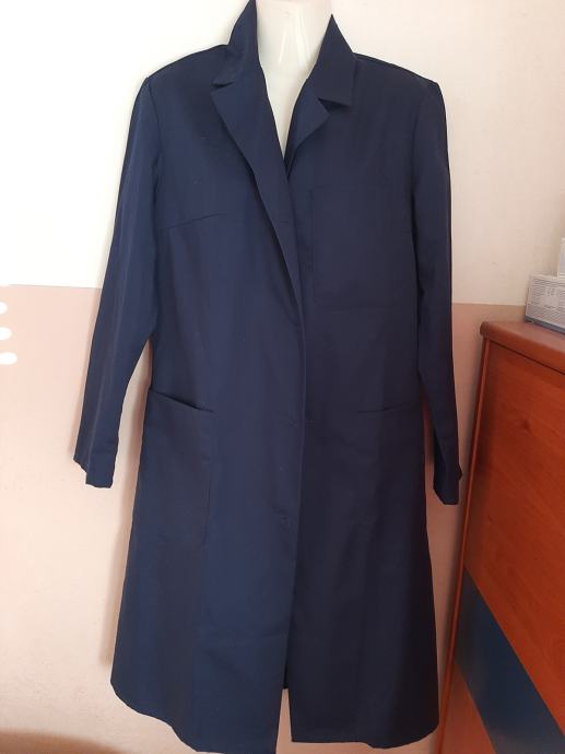 Potpuno nova ženska tamnoplava radna kuta bez rasporka. Vel. 44. Dužina od vrha ramena do dolje 100cm, širina od pazuha do pazuha 53cm