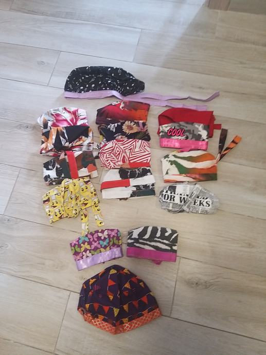 Radne kape (za zdravstvene djelatnike, kuhinju, slasticare ili bilo sto gdje je potrebna zastita). Neke su potpuno nove, neke su bas malo koristene, par komada je cesce koristeno.