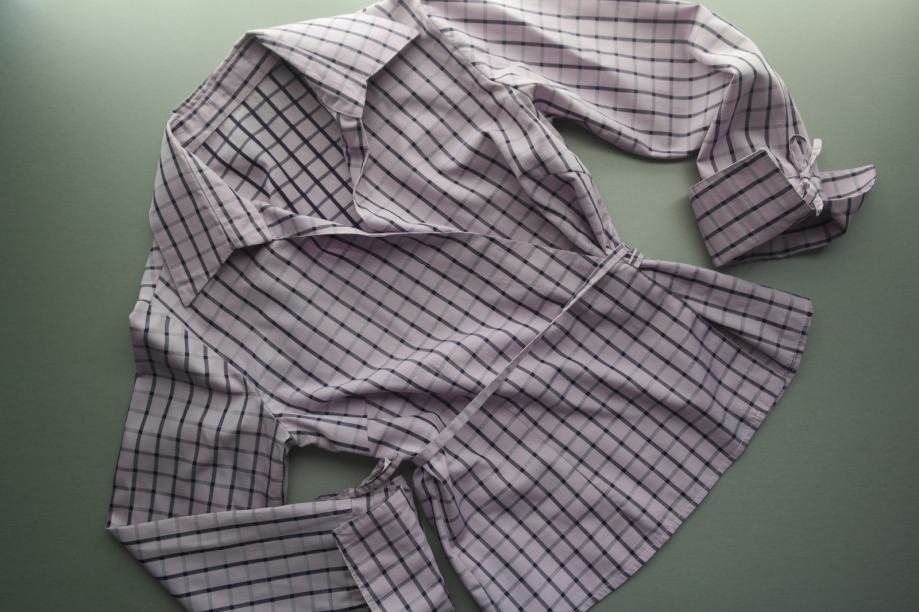 Ljubičasta karirana košulja na preklop, veličina 38, pamuk 100%