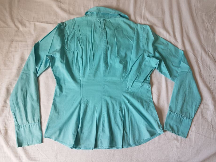 Benetton košulja svijetloplave boje, strukirana, pamučna, elastična. Nošena, ali očuvana. Veličina 38 (M). Slikano bez i sa blicem.