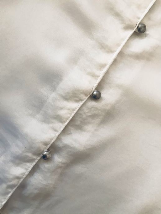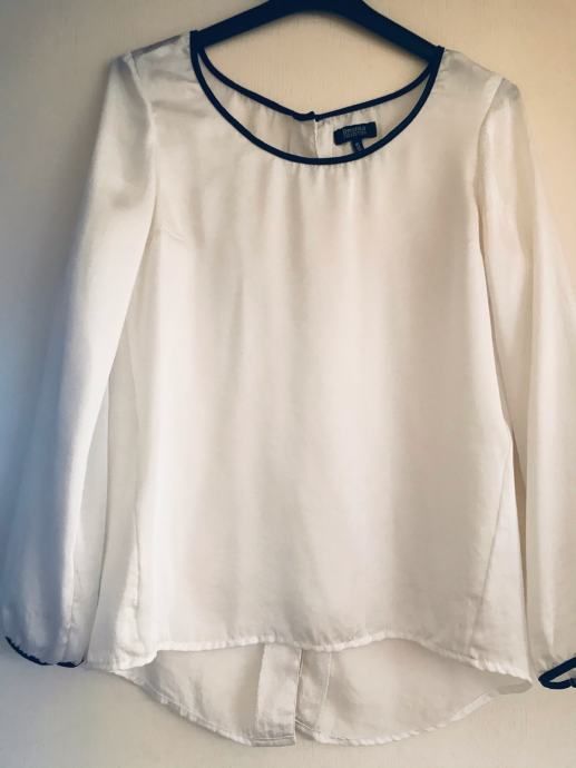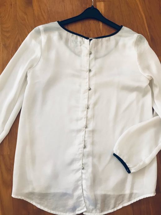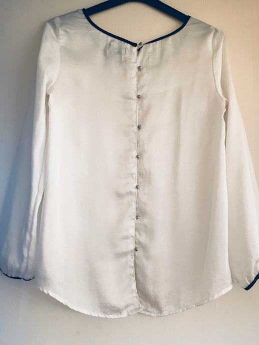 *bijela saten košulja sa srebrnim gumbima na leđima, crni obrubi detalji