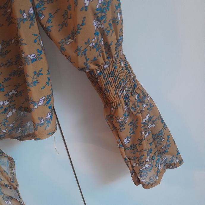 Lagana i providna bluza, na prednje vezanje, rukavi su lagano stisnuti lastikom. Veličina L. NOVA