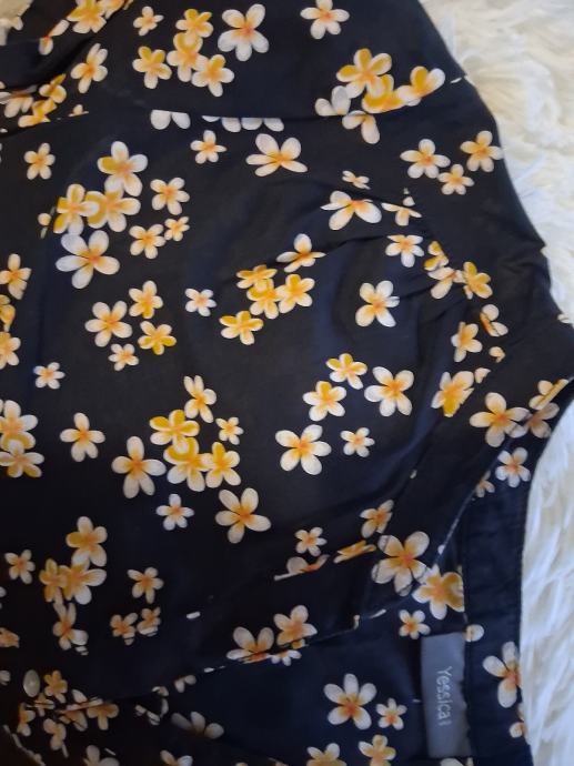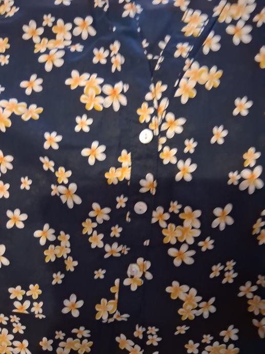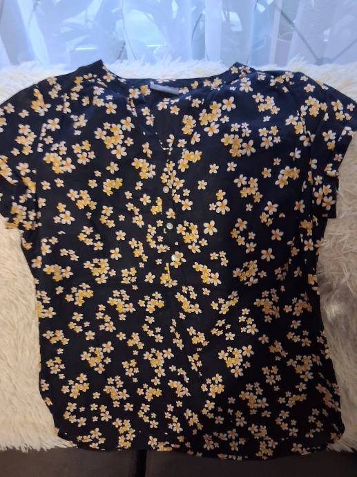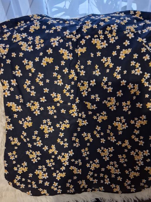 Crna bluza/košulja na bijelo- žute cvijetove.Prozračna i udobna,vel.40.Višak u ormaru.Dužina 70cm.Grudi do 110cm.
