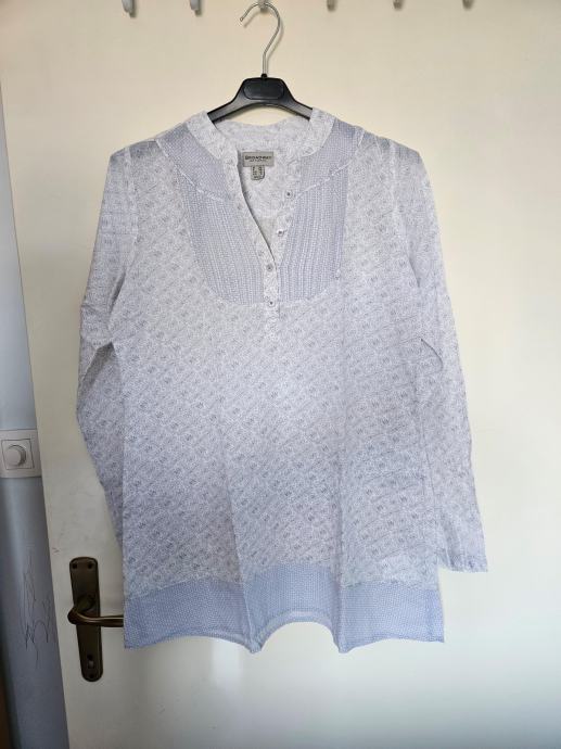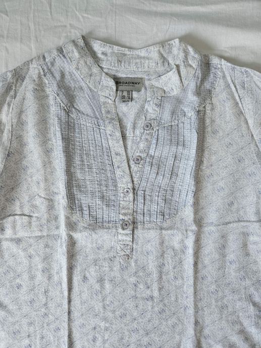 Broadway lagana pamučna košulja dugih rukava. Bijele boje sa stinim plavim uzorkom. Strukirana.Malo nošena, očuvana. Veličina na deklaraciji S, 36, no realno je veća, te odgovara veličini 38, M.
