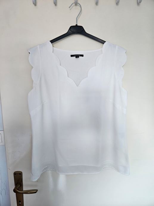 Prekrasna bijela majica bez rukava marke Comma. Vanjski materijal poliester, podstavljena materijalom od viskoze tako da je udobna za nositi. Ne prozire se. Komotni broj 38 (M). Lagana, udobna. Nošena svega par puta, bez oštećenja, kao nova.
