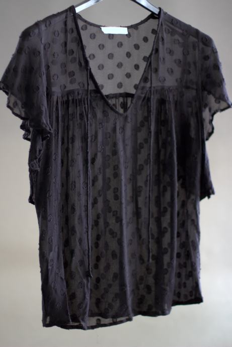 Lepršava prozirna crna bluza na točke iz Manga, idealna za ljeto, od viskoze, veličina S/36.