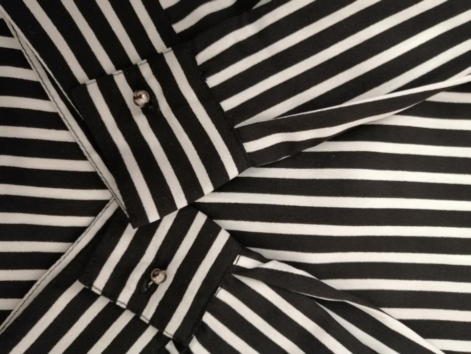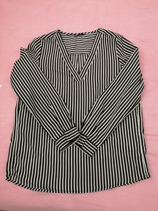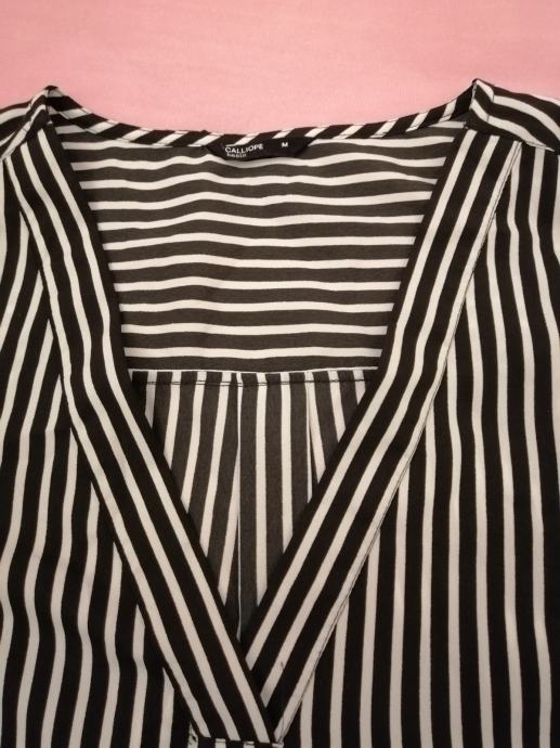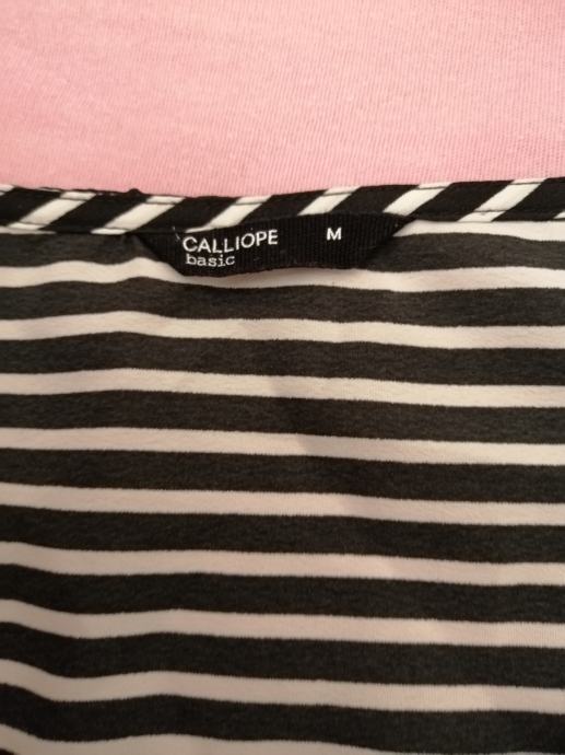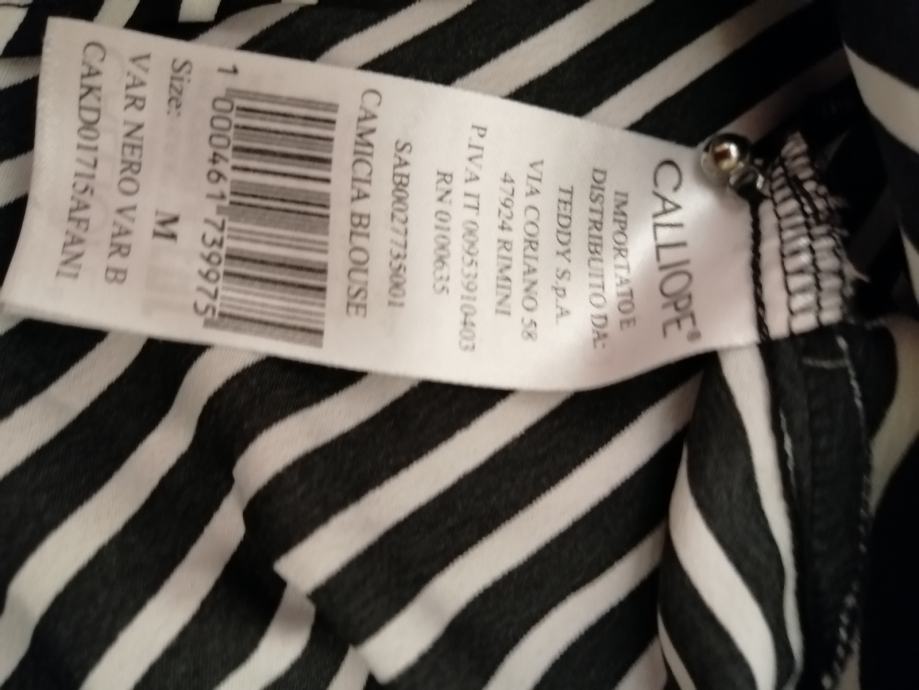 Prodajem novu bluzu crno/bijele boje, vel.M, marke "Caliope". Kupljena, etiketa skinuta ali ne odgovara stoga se prodaje. Sastav materijala: 100% poliester.