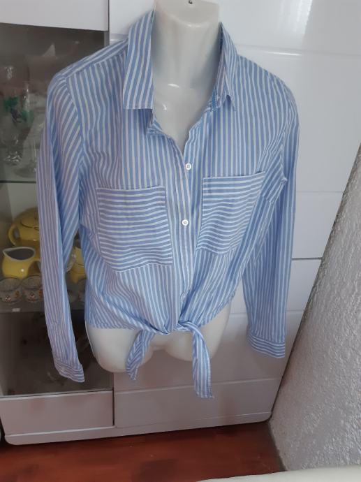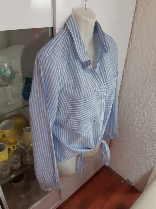 CROPP prugasta svjetloplava kosulja na vezanje naprijed, 2 velika dzepa. Sirina prsa, prednja strana: 50 cm, dužina: 56 cm, rukav: 61 cm.