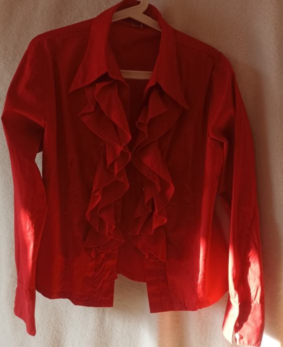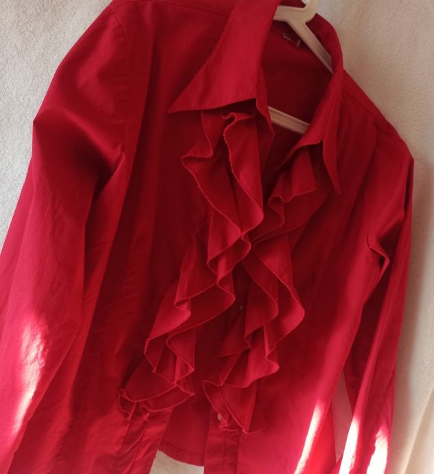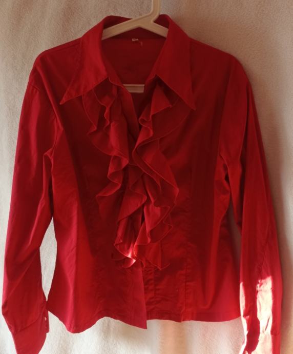 NOVA ŽENSKA KOŠULJA 44 2XL VOLANI ŠPIC KRAGNA VOLANI DUGI RUKAV CRVENA