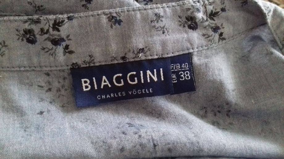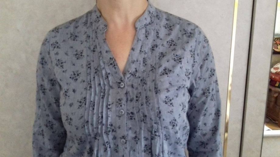 Cvjetna košulja, plava sa malim cvjetićima, izgledao kao jeans kosulja, naprijed ima falte i kopča se, veličina 38, ruska kragna, 100% pamuk, super stoji, udobna za nositi, nosena svega 2-3 puta, kao nova. Mekana.