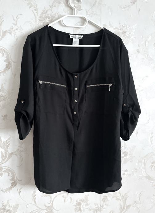 Crna ležerna bluza sa srebrnim zipperima.