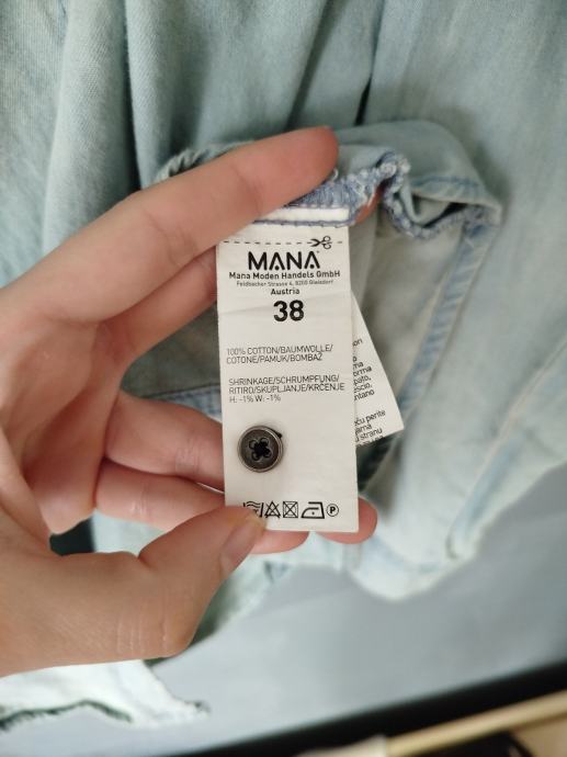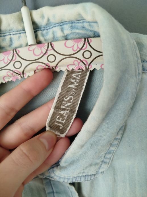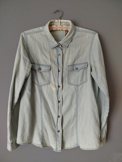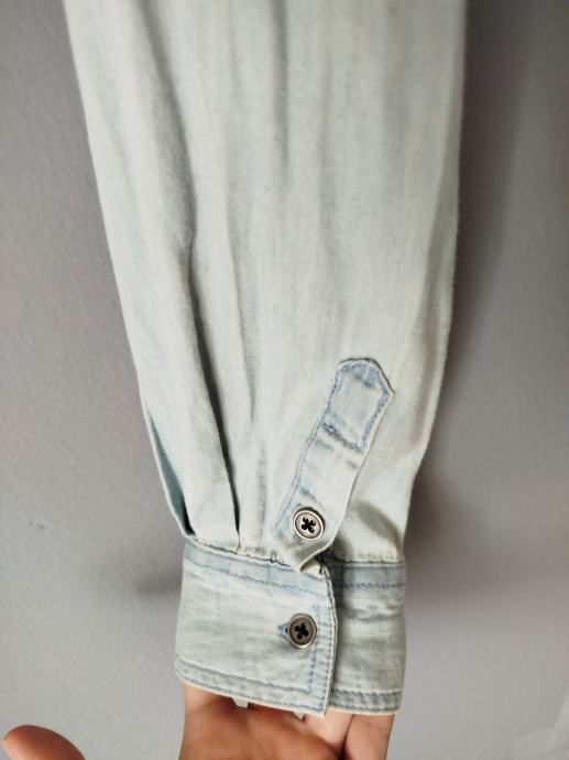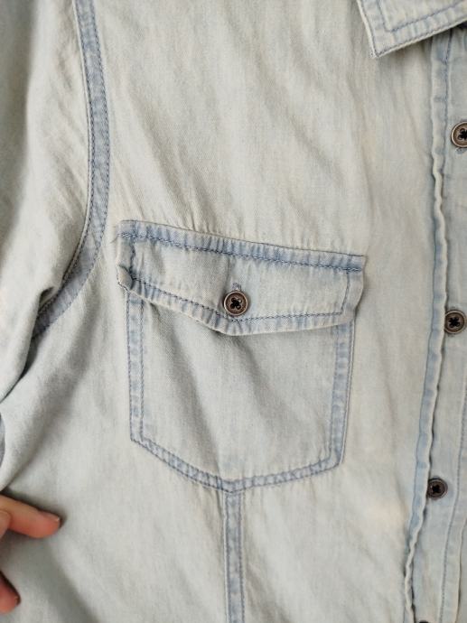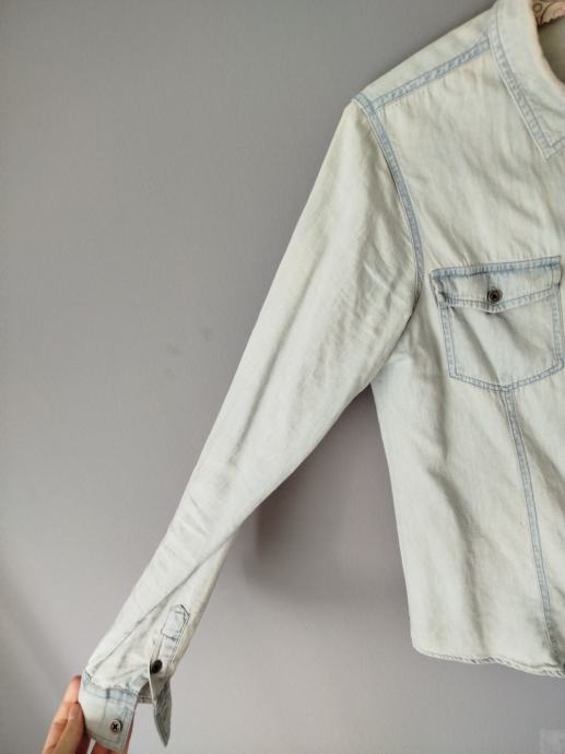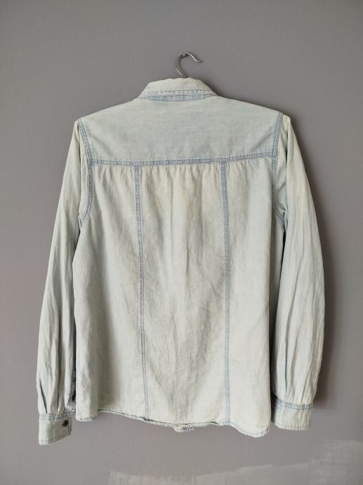 Jeans košulja, svijetlo plavi traper. Bez ikavih oštećenja ili tragova nošenja, obučena jednom ili dva puta. Veličina 38. 100 % pamuk