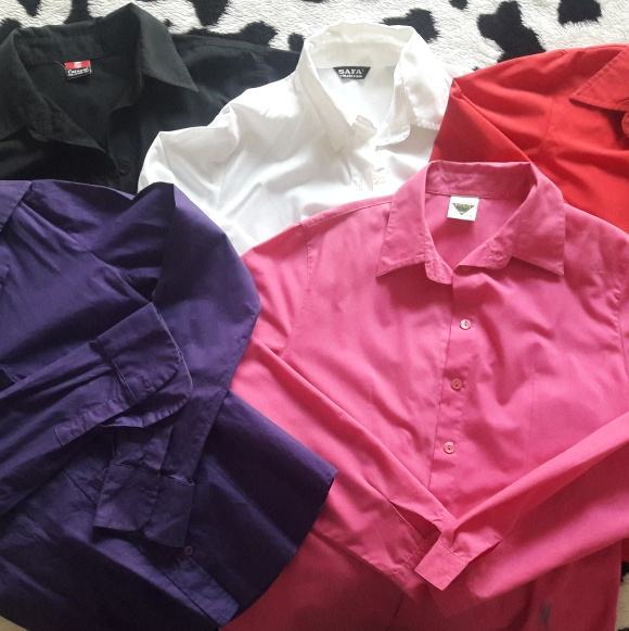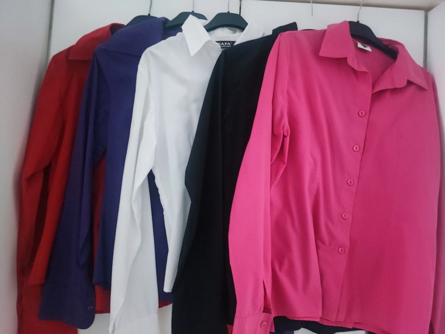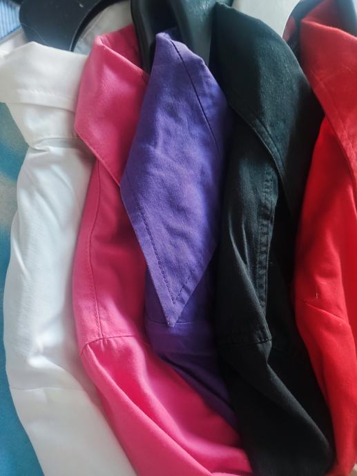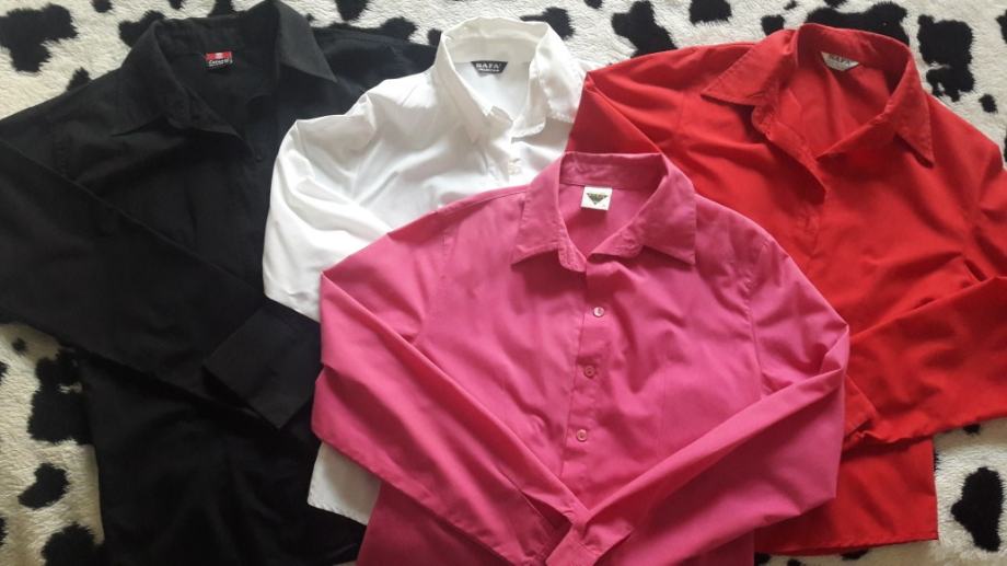 Prodajem lot od 5 malo nošenih pamučnih košulja s dugim rukavima, veličine 38. Košulje su u različitim bojama, a u kompletu se nalazi i crna košulja koja je navedena u opisu proizvoda.