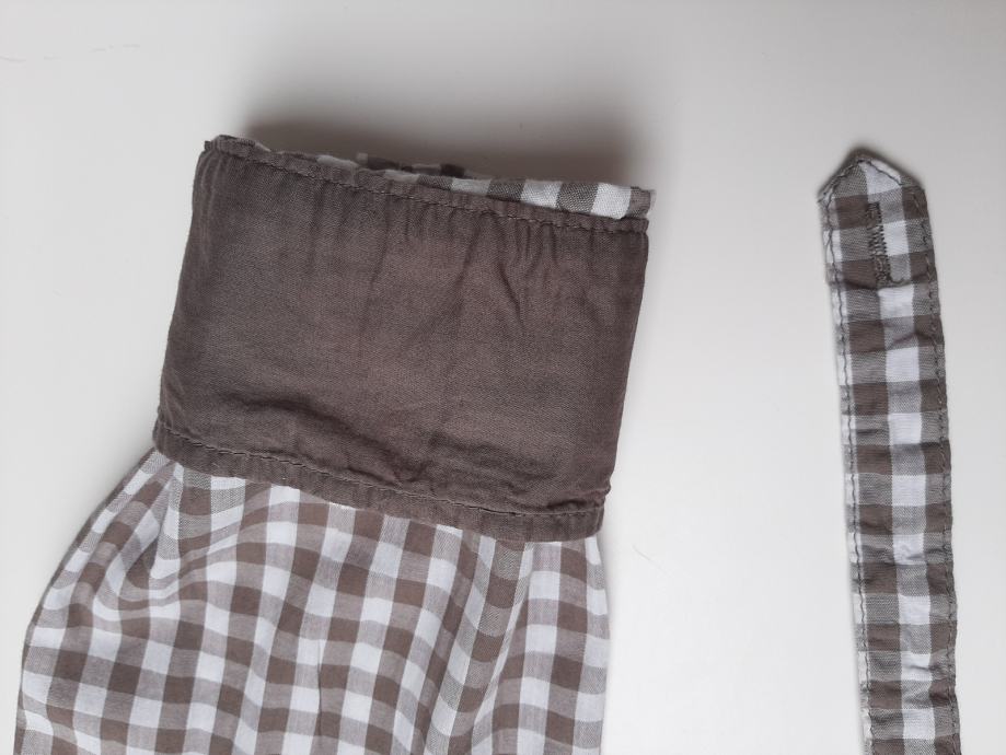 Kad se zavrnu rukavi ima smeđe rubove a rukavi se mogu pretvoriti u kratke sa trakicom koja je iznutra I kopča se na gumb izvana na rukavi