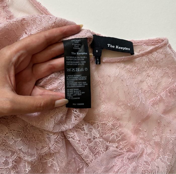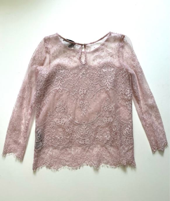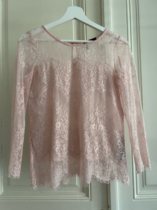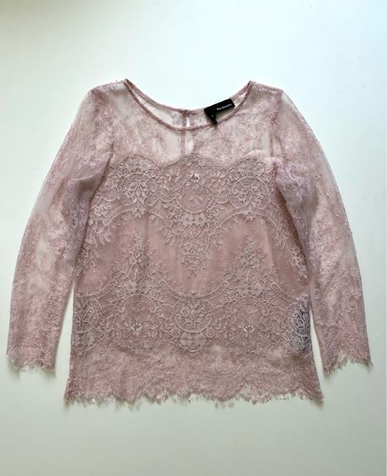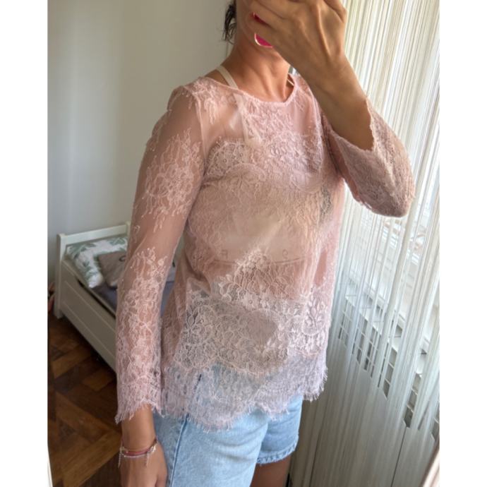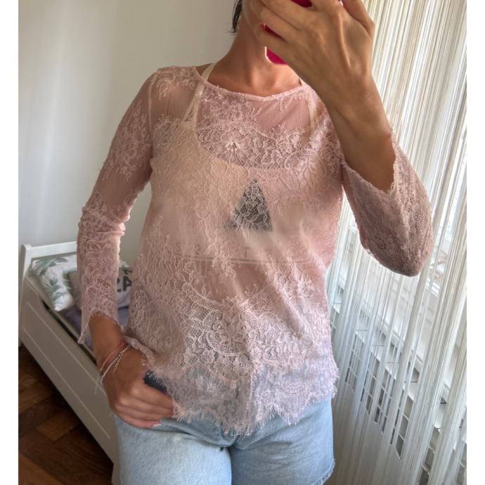 Evo, jos jedna roza Kooples komadina - ovaj put od mekane i ugodne cipke. Velicina je S. Nosila sam ju svega par puta ali na svilenu potkosulju ispod. Poslikala sam namjerno na sportski grudnjak, da ne odgovaram na pitanje jel prozirna. Je, ako ne nosite nista ispod :)