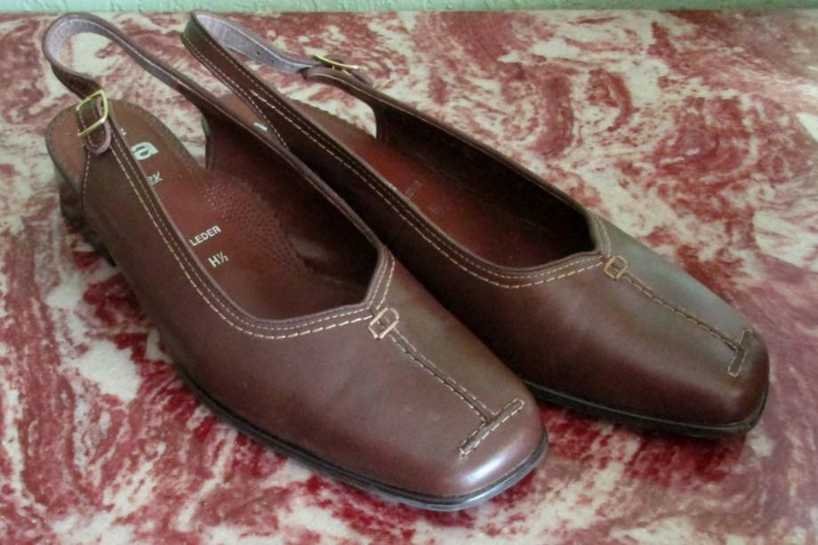 Savršene klasične smeđe sandale - prvoklasni materijali i izrada. Prirodna koža iznutra - podstava i izvana, potpetica niska puna visine 3 cm. Stopalica eko certificiran kožni uložak širine H1/2. ARA - eur 24