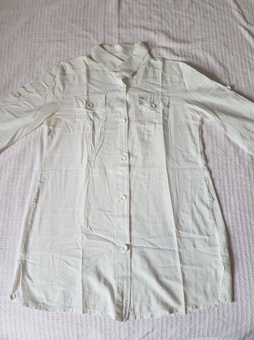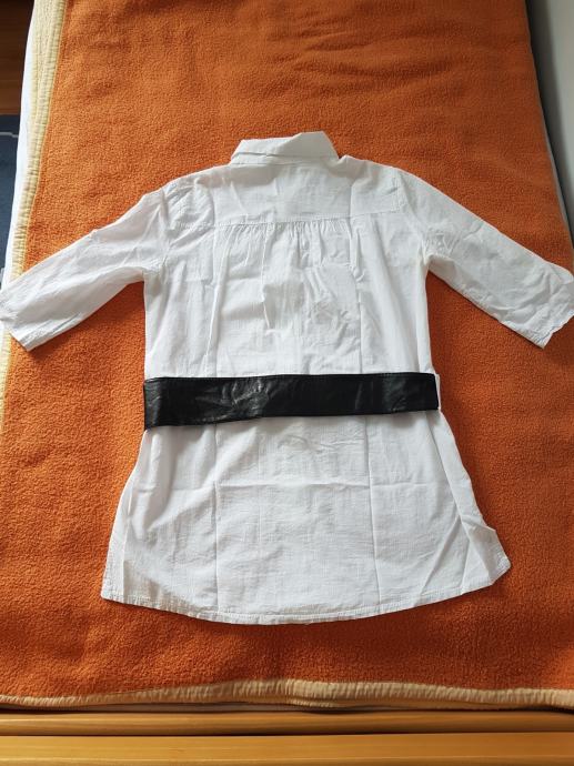 Bijela bluza, tri četvrt rukavi koji se mogu podići i biti kao kratki. Dolazi sa pripadajućim remenom. Pamučna, veličina M (38), malo duža. Malo nošena, očuvana.