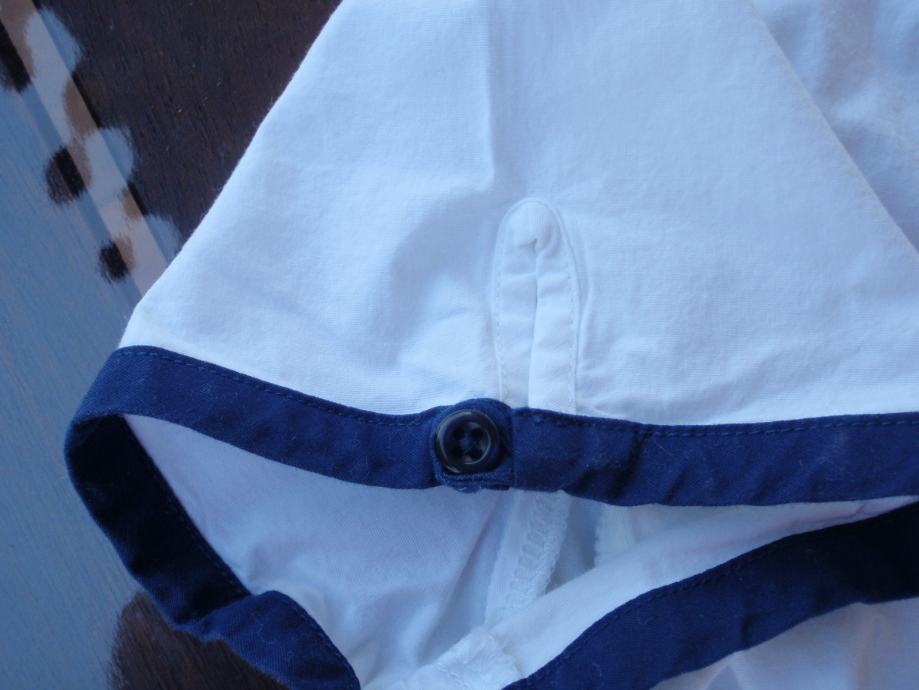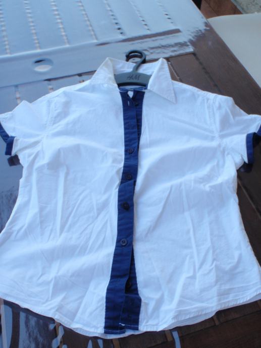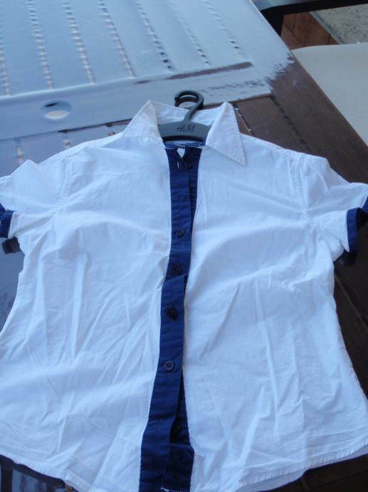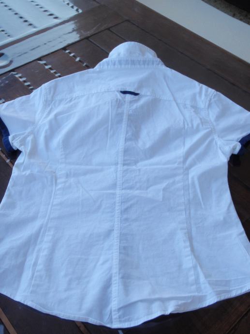 Ženska košulja kratkih rukava. Brand Nomadic. Velična S. Materijal pamuk 97%, elastin 3%. Bijele je boje sa tamno plavim rubom na rukavima i na prednjoj strani kopčanja. Strukirana. Dužina 50 cm. Jako dobro očuvana, bez flekica i oštećenja. Pogledajte moje ostale oglase.