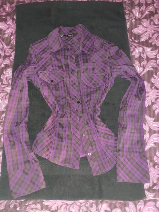 Ljubičasta košulja, broj 36, ali po meni bi ovo bilo za XXS.