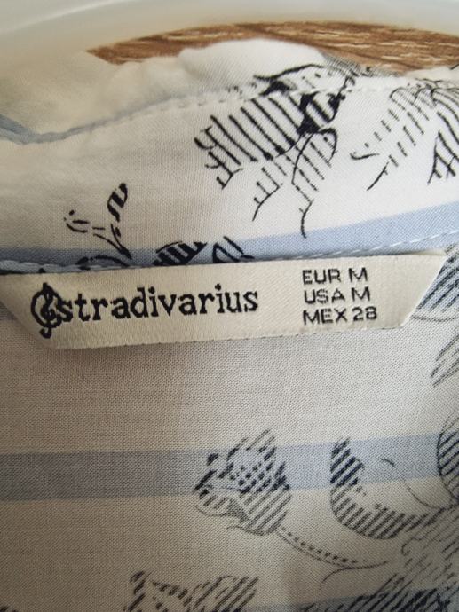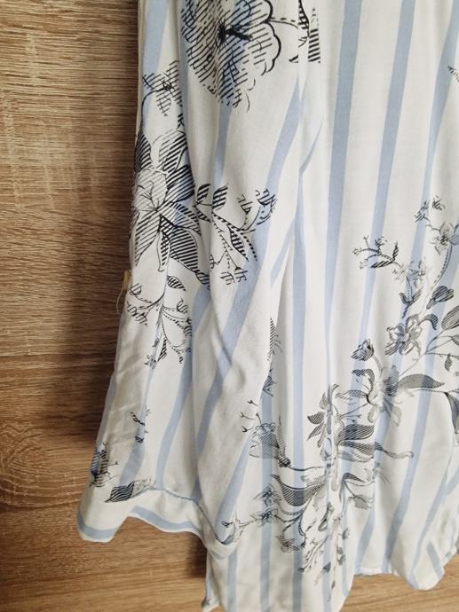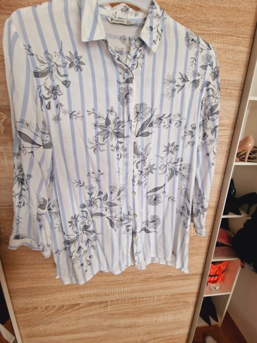 Košulja na pruge bijelo-plave boje s detaljima cvijeća. Kupljena u Stradivarius-u, nošena, no očuvana. Veličina je M/38. Rukavi se mogu još dodatno zafrknut.