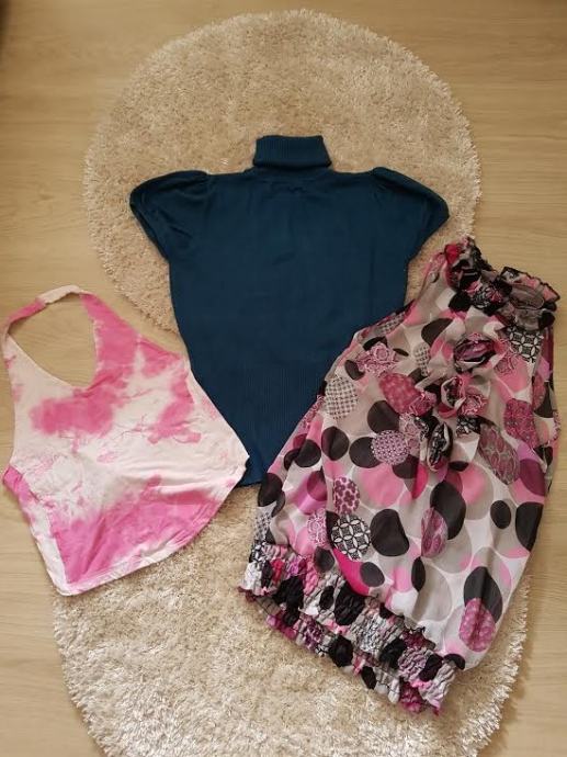 Crni top Zara, šarena majica SOliver, petrol dolcevita Amadeus, karirana haljinica Esprit...