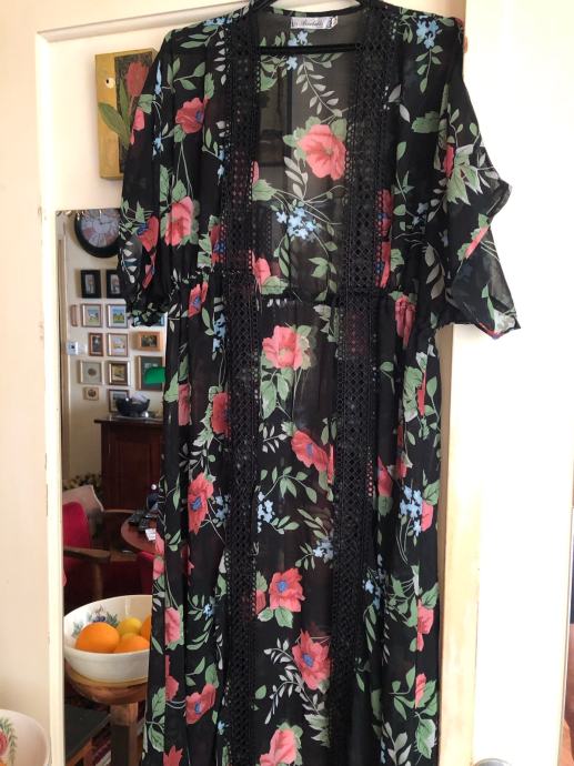 Predivan ogrtač, može se nositi na razne načine. S/M vel. Za višlju osobu.