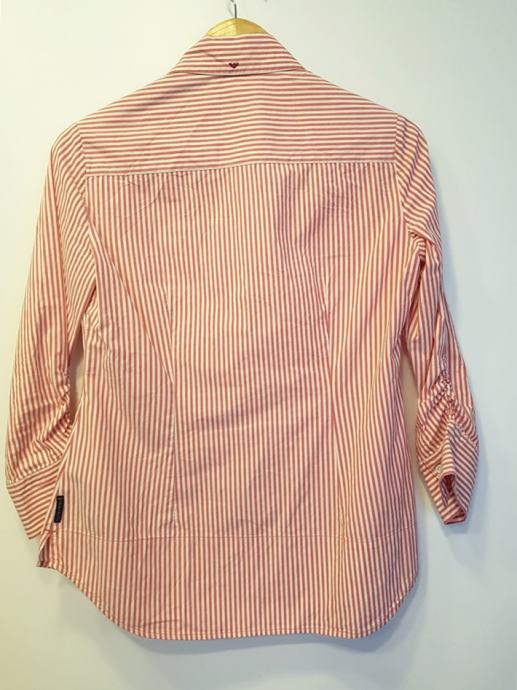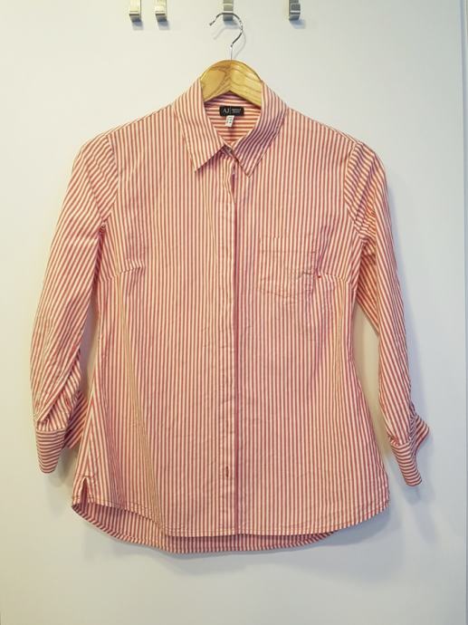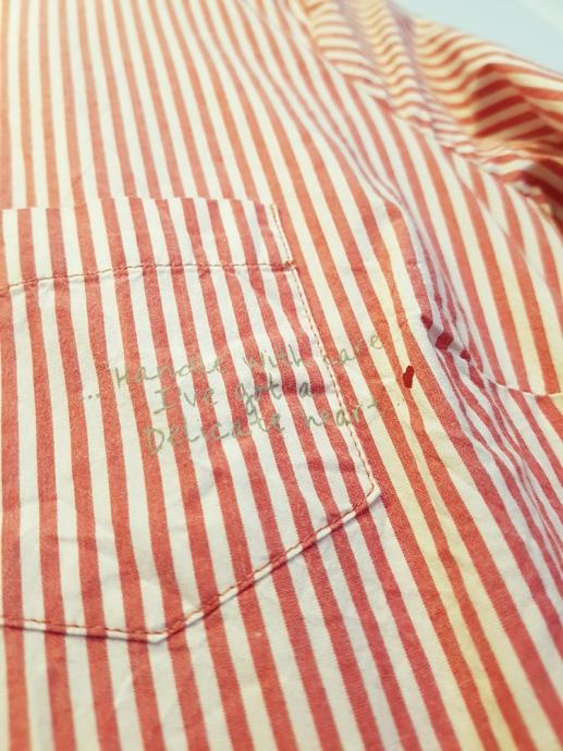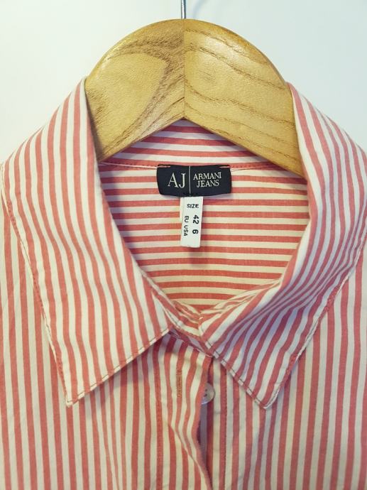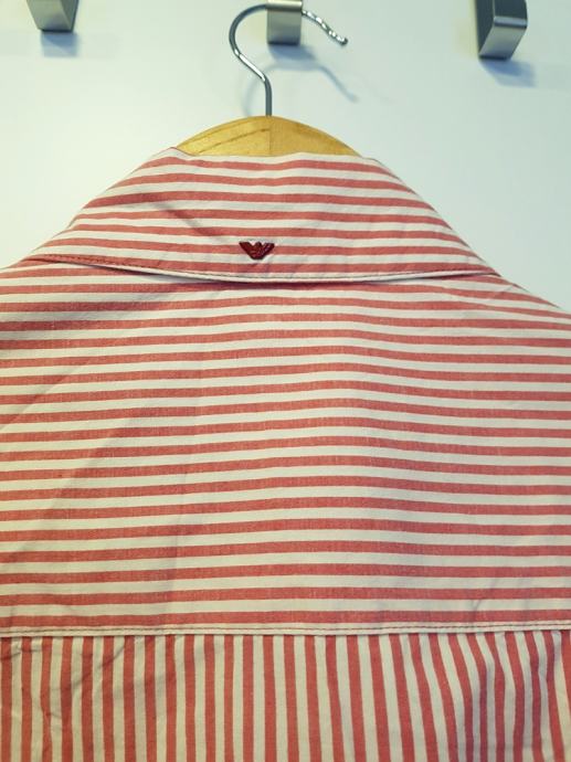 Na depu ima ispisani tekst i crveno srceko, iza na okovratniku ima metalni crveni Armani logo.