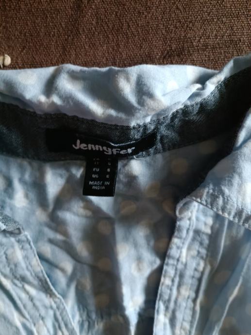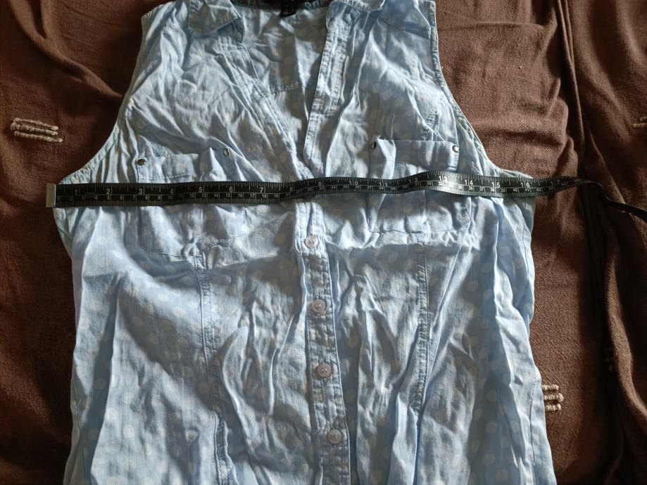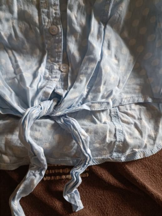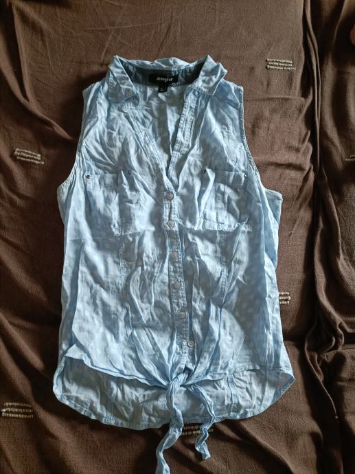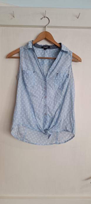 Plava košulja Jennyfer s točkicama veličina S, vezanje u struku, gumbići, bez rukava.