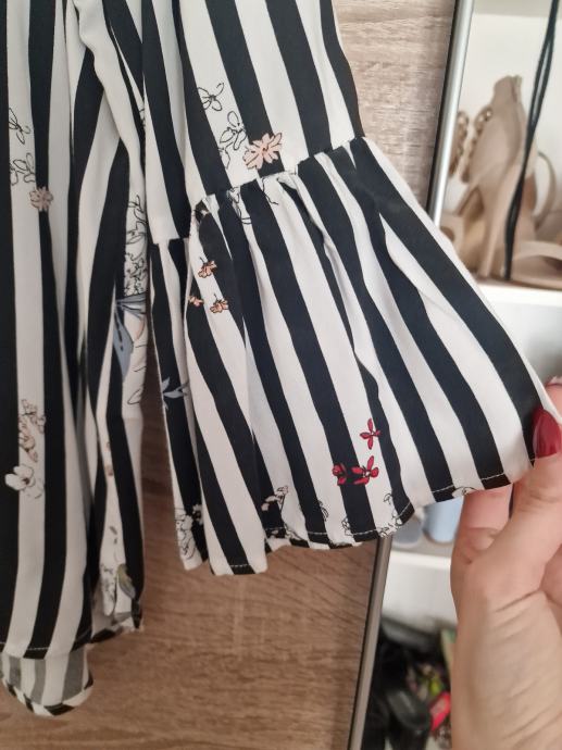 Košulja na crno-bijele pruge sa cvjetnim detaljima. Veličina je 38/M. Nošena, no odlično očuvana i bez tragova nošenja. Šaljem poštom/tiskom, ili moguće preuzeti u Zagrebu...:) Za dodatna pitanja slobodno se javite.