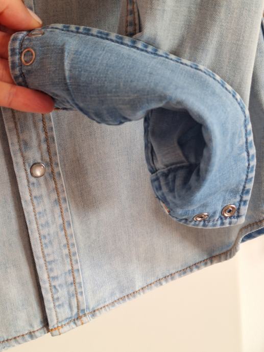 Košulja je ispranog svijetlog trapera, ali kad se podvije rukav unutrašnjost rukava je tamnija.