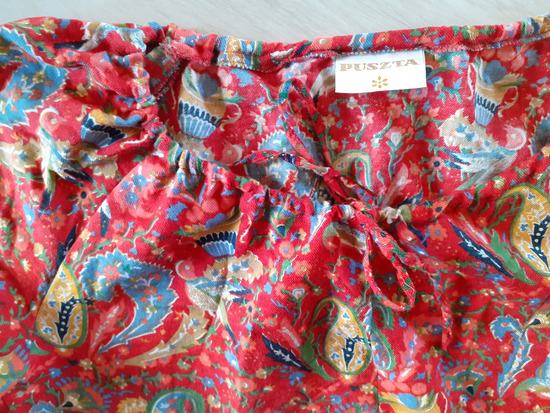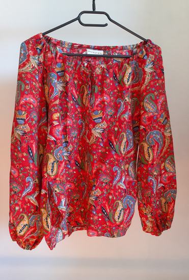 Crvena vintage bluza s balon rukavima, šareni paisley uzorak, vezice na ovratniku, odlično stanje.